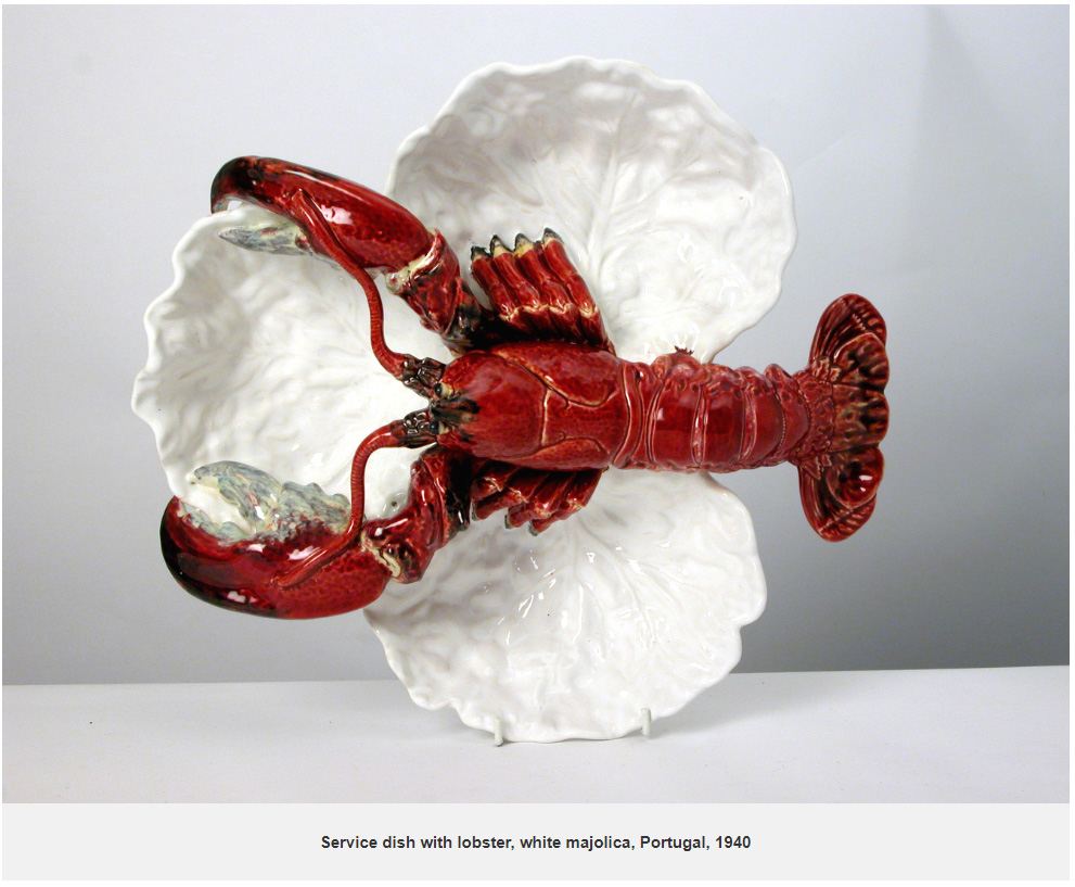Other items at Greenway reflect the extent of Agatha’s travels; a lobster serving dish, popular with visitors today, was made in Portugal. (Lobster, incidentally, was Agatha’s favourite food followed by blackberry ice which she served at Greenway on both her 70th and 80th birthdays.) The extensive though often curious tablewares at Greenway, much of which were inherited from Agatha’s mother who was famed for throwing large dinner parties, are displayed packed into cabinets in the winter dining room. Domestic pottery sets with more modern designs crept into the collection, purchased from homestores such as John Lewis.