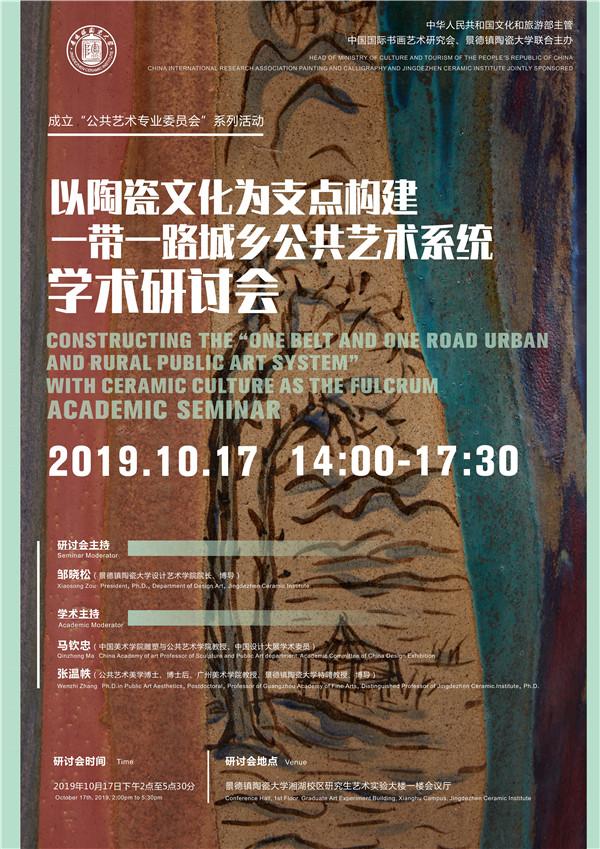 2019年10月17日上午9点,在景德镇陶瓷大学湘湖校区举行了由中国文化和旅游部主管的中国国际书画艺术研究会“公共艺术专业委员会”成立揭牌仪式。