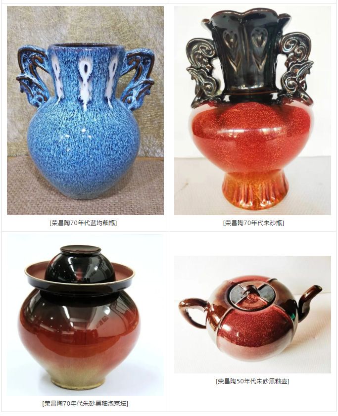 解放后新中国的建设,荣昌陶更是发展迅速,50年代安陶通过公私合营,60年代安陶形成了国有企业,有了整体科学的发展规划,同时学院的老师教授和学生下厂支援,把美学先进工艺线向基层发展,当时有四川美院、中央工艺美院、景德镇陶院的老师和学生,四川美院老师有罗明遥、梁启煜、马高骧等,中央工艺美院老师有张守智夫妻,杨永善等,景德镇陶院的周国桢老师,在安陶创作、装饰、釉色进行了全方位的科技革新。川美老师梁启煜、罗明遥、马高骧等在安陶的刻花、点花、贴花、堆花、陶雕工艺科学的艺术的创新,同时钧釉、朱砂釉许多釉色的提升,乌金釉、铜釉、无光釉的开发,中央美院老师张守智和杨永善在安陶中的壶具、罐型、瓶创新、装饰大胆创新,景德镇陶院的老师周国桢首次创作出自己风格的动物系列,周国桢老师70年代当时创作的动物都是小型的,采用了安陶的各种均釉装饰,有几款猴、几款熊猫、几款象,这几位美院老师给荣昌陶留下十分珍贵的工艺技术,给后人一大启迪和宝贵财富。重庆市荣昌陶器厂在70年代末到80年代中期产品,在前期美院老师及厂里技术人员共同的传承和创新中,造型、装饰、烧制都有大大进步,产品在实用性和艺术的巧妙结合,而得到市场的认可,同时畅销许多国家,出口有咖啡具、花器、文具、茶具、口杯、动物、人物等工艺品,形成荣昌陶器空前的兴旺,是历来荣昌陶器最为灿烂辉煌时期,产品也是最为丰富,特别是60年代末70年代初起荣昌陶的泡菜坛名扬四海,不管是造型和装饰都达到了极致的工艺水平,及艺术与实用器最为完美的结合产物。