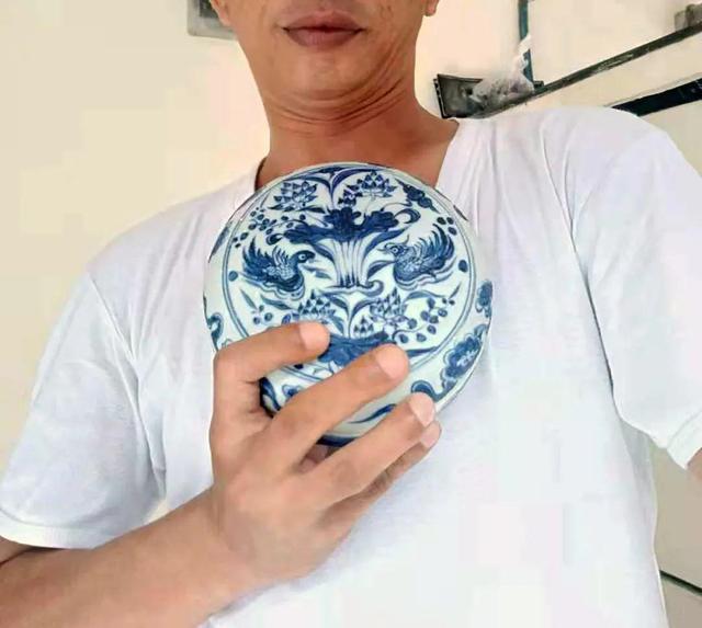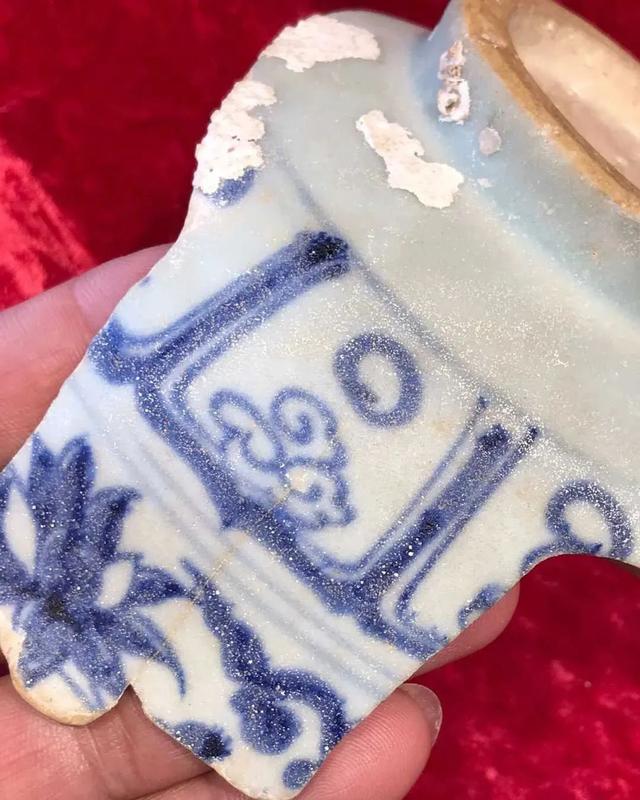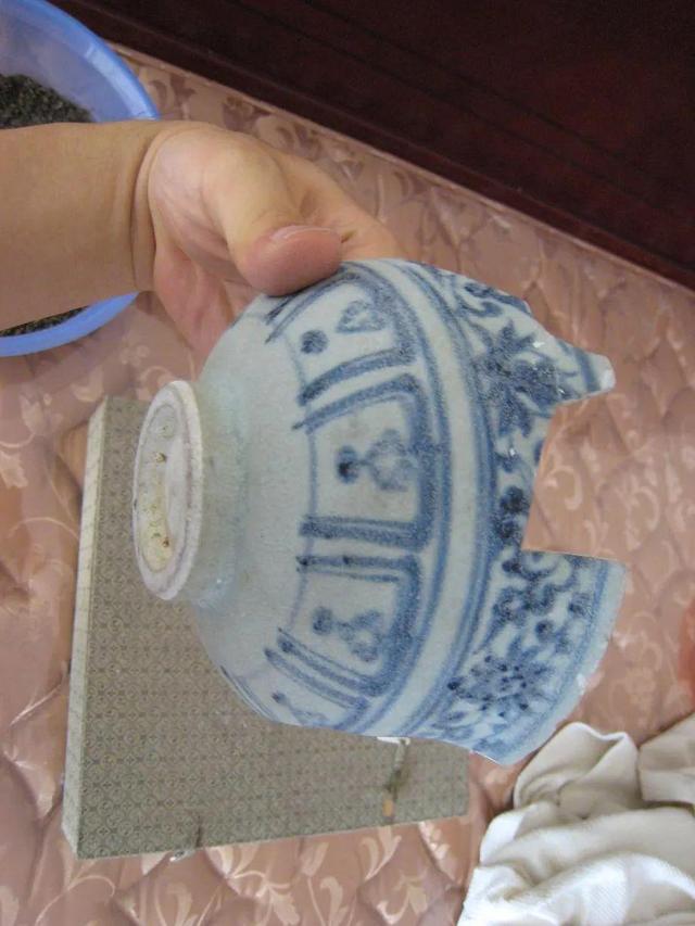 东南亚朋友手中展示的这件 “海捞瓷”,就是笔者购买的元青花盒型“辟雍砚”完整器: