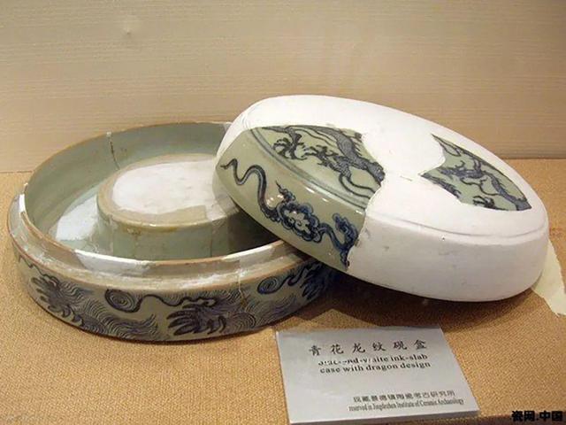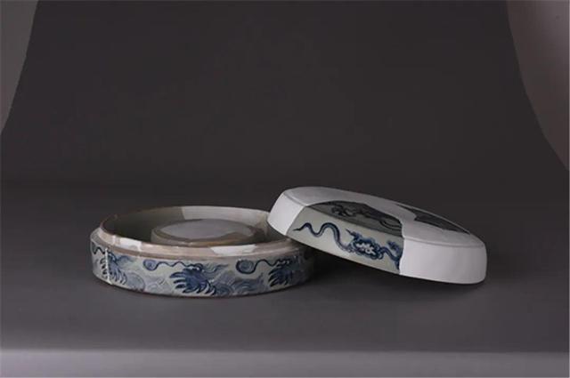 盒型“辟雍砚”形制较少,主要出现在元、明清时期。此砚盒顶面绘有五爪龙,应是元朝皇家订烧之物,景德镇市陶瓷考古研究所藏品。