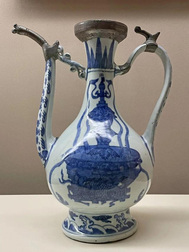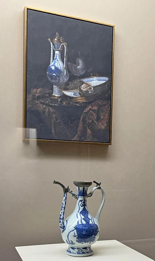 大约一个世纪以后,这款执壶出现在欧洲油画中。1660年,荷兰画家威廉·卡尔夫在《静物:青花执壶、瓷盘、水果、鹦鹉螺杯》中描绘了这件执壶。