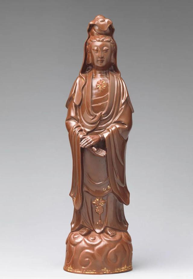 此件观音像是迈森瓷厂最早的一批产品之一,年代为1710年至1713年。迈森瓷厂在建立之初已能生产工艺精湛的红色炻器,这些产品的原型一部分来自当时流行的银器,一部分来自奥古斯都收藏中的中国瓷器。这件观音是为奥古斯都所藏一件德化窑观音像特别制作的复制品,其质地与宜兴紫砂器十分相似。
