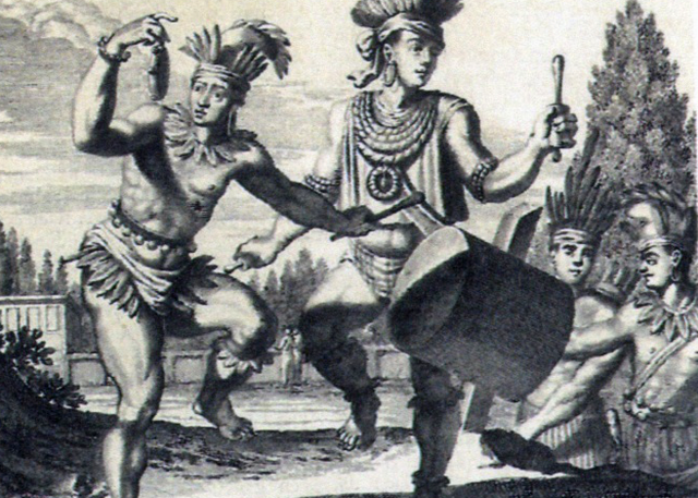 画面中所描绘的两个黑人却有另外一个非常不同的来源。他们的造型以1671年在阿姆斯特丹出版的《全新与未知的世界》一书中所收录的美洲土著的插图为基础。