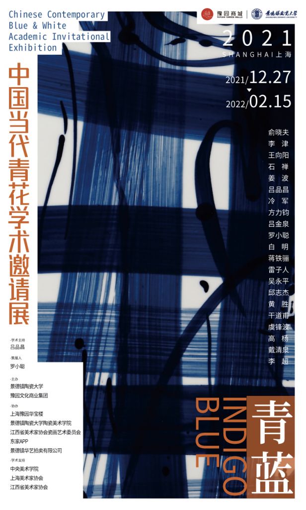 —————————————————————————————————————展览日期:2021年12月26日——2022年02月15日展览地点:上海市黄浦区方浜中路265号华宝楼三楼主办单位:景德镇陶瓷大学 豫园文化商业集团承办单位:上海豫园华宝楼 景德镇陶瓷大学陶瓷美术学院、东家APP、 景德镇华艺拍卖有限公司学术支持:中央美术学院 上海美术家协会 江西省美术家协会
