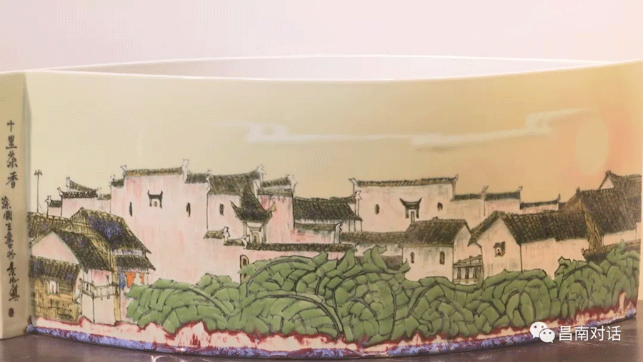在景德镇中国陶瓷博物馆7号馆,陈列着一件颜色釉镶器作品《十里茶香》。这件作品以颜色釉装饰手法描绘一派江南好景,画面色彩层次感徐徐渐进,与器型交汇呈现间相得益彰,不见茶叶却闻茶香。今天我们的节目就邀请到这件作品的作者涂国生老师做客演播室,一起来聊一聊色釉绘画的相关话题。