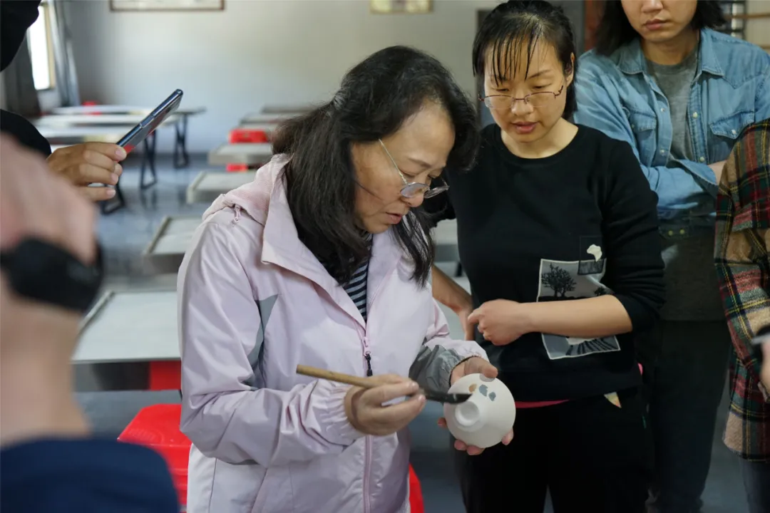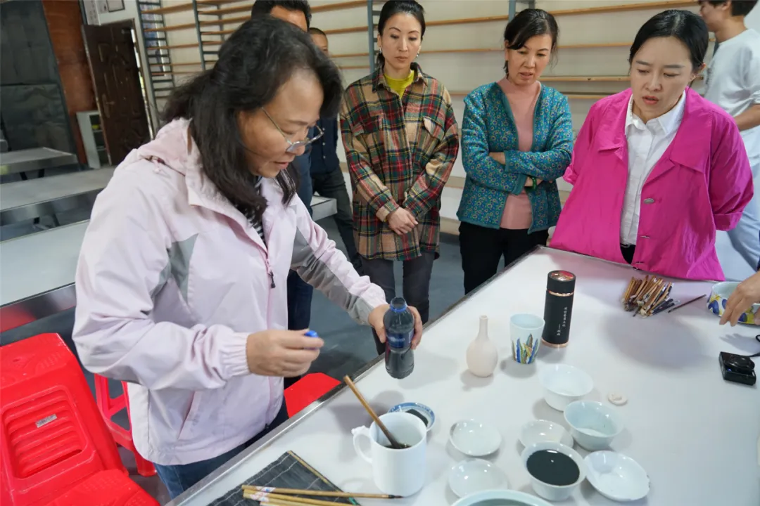 下午,於彩云老师为学员们做了青花分水示范,并详细介绍了料水的调配、分水的技法步骤,以及釉色使用的注意事项等。
