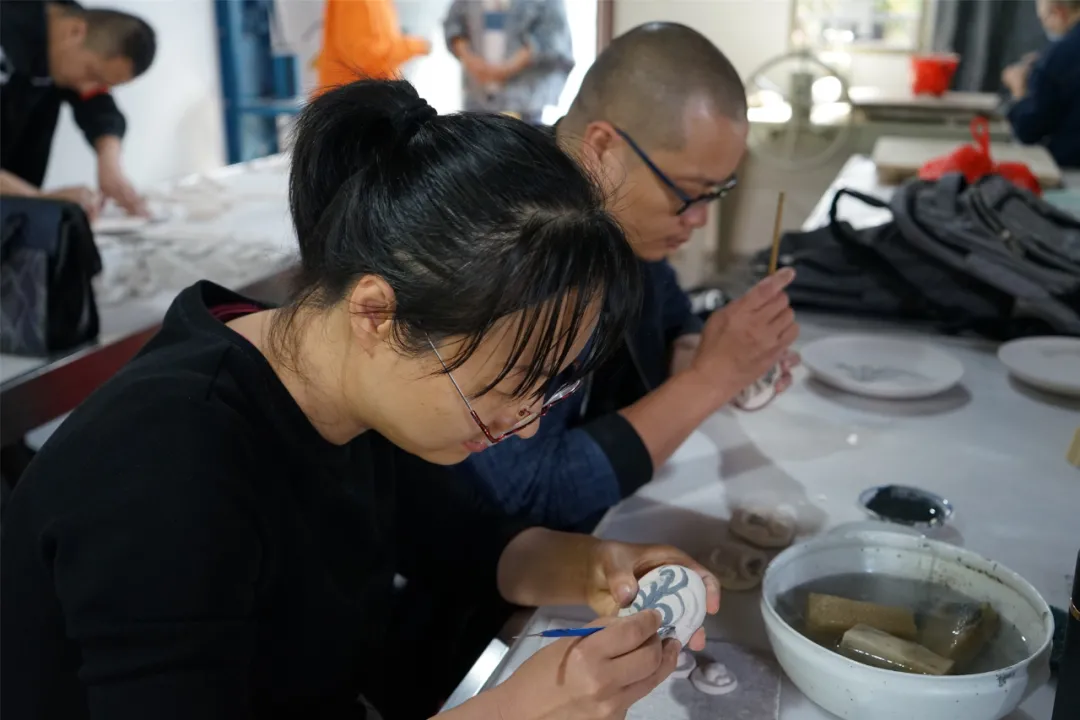 上午的课程中,於彩云老师为学员们详细介绍了景德镇的当代制瓷工艺与工具、景德镇传统青花与当代青花的异同点、景德镇陶瓷现状,使学员们对景德镇青花的发展及在创作中的使用有了深入了解。在互动环节,於彩云老师将青花材料的使用方法作了讲解,并和学员分享了青花材料在不同泥料上的呈色效果。