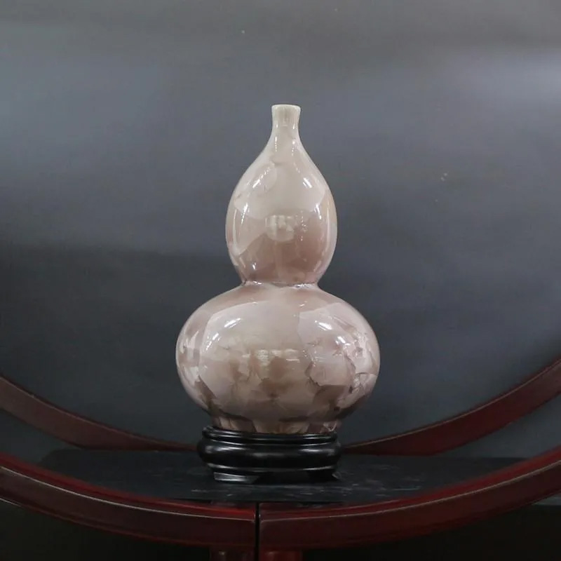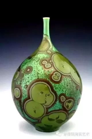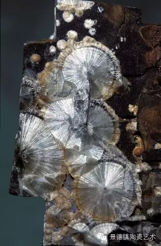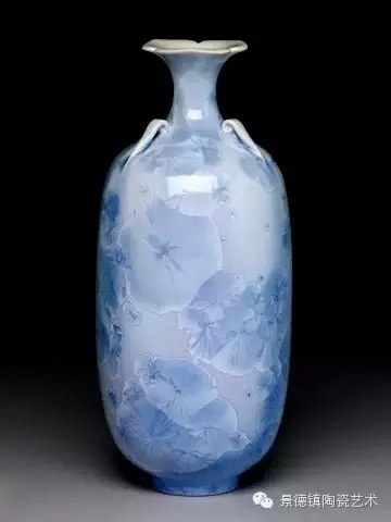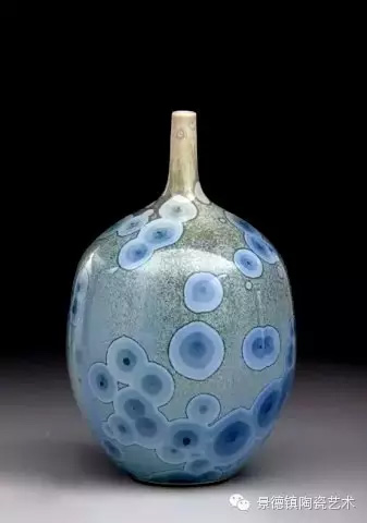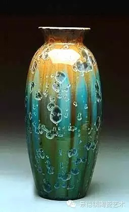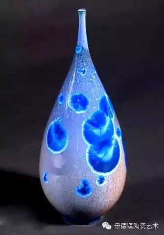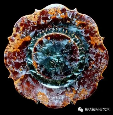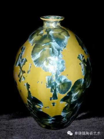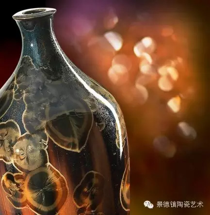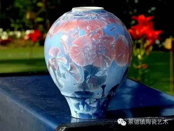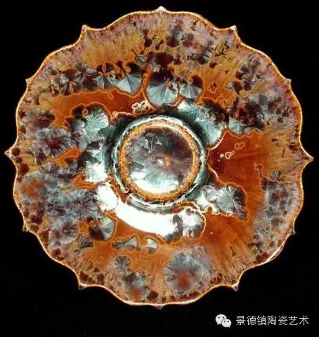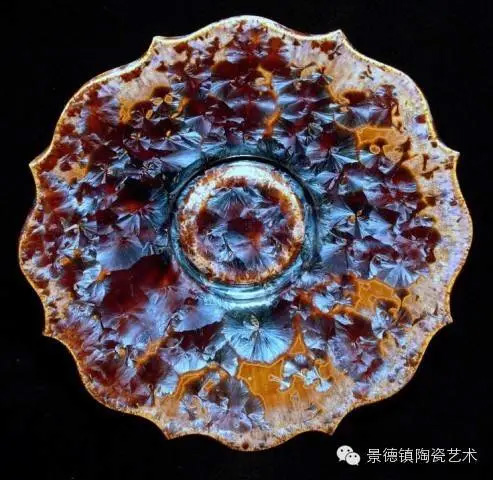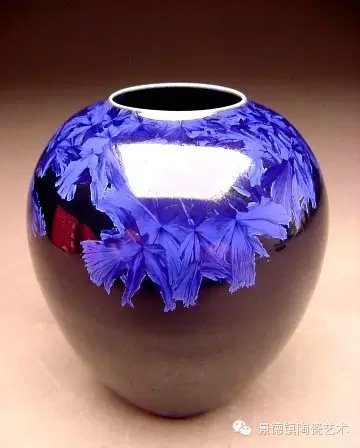 结晶釉作为一种高级陶瓷艺术釉,结晶釉美丽、新颖的自然晶花,及其外观的多种多样、色彩的缤纷,这些结晶犹如绽放的花朵一样,又像天空中的星星一般,给人以强烈的艺术效果和视觉震撼,深受大众的欢迎和喜爱。早在唐代,中国就有了结晶釉的萌芽。到了宋代,建窑、吉州窑和北方瓷窑烧制的“铁黑釉结晶”,其黑釉上半露银白色如兔毫状的细丝,称为“兔毫”。银灰色光泽的小圆点,称为“油滴”。还有“鹧鸪斑”、“铁锈花”等多种结晶釉,被认为世界上最早成熟的结晶釉品种。清代,又陆续出现“茶叶末”、“鳝鱼黄”、“蟹甲青”等新品种,越发精美。在国外,据文献所载,最初研究结晶釉的是法国国立制陶所的埃别尔曼,他在1847—1852年间曾进行过锌结晶釉的研究,1894年美国辛辛那提的鲁考特陶所还介绍过他的制品。1897年,丹麦的哥本哈根王室瓷器制造所把结晶釉应用于陶器上。日本出现比较早的是细纹釉,近似结晶釉。但是结晶釉成熟温度窄,析晶温度范围窄,高温黏度低,极易流釉,造成成品率低,制作过程较难控制。除了正常的制作步骤和釉料的配方外,在给坯体上釉时,结晶釉的釉层厚度非常讲究,必须要喷得比较厚。如果喷得太薄的话,就无法形成结晶;喷得太厚的话,在烧的时候又容易流掉。由于素烧胚很会吸收水份,所以如果喷上釉之后,想要在喷一次以增加厚度,釉料就会脱落而掉下来,无法顺利上釉,因此为了要能厚涂,在喷釉之前要先把胚体稍微打湿,减低吸水性,才能反复喷釉。要烧出好的结晶釉产品,温度是十分重要的,结晶釉对于火焰较为敏感,所以通常不用还原烧,而用氧化烧成。电窑只有加热作用而没有燃烧现象,所以电窑最适合结晶釉的烧制。由于配方不同,烧成温度也不同,结晶釉的烧成温度通常在1250度到1280度左右,结晶釉对于温度十分敏感,晶核形成时温度如果过高的话,晶核就会消失;温度不足,晶核又还没有生成,都将无法烧出完美的作品,结晶釉的烧成范围很窄,一般陶瓷釉料又是温度差个20至30度还没什么影响,但结晶釉往往差个3-5度,结果就完全不同。结晶釉的冷却过程是其要领,过饱和的溶质所析出的晶核在冷却的过程中会慢慢成长,形成美丽而大朵的晶花,所以结晶核在冷却到特定温度时,恒温的时间必须充分。一般而言,时间越长,晶花成长越大;时间越短,结成的晶花越小。然而恒温的时间拖得太久时,由于结晶的流动性很高,所形成的晶花往往会流到下部去,作品的上部就只剩下光溜溜的一片。所以,虽然结晶釉古往今来都非常的受欢迎,但由于烧制困难,一直都没有被普遍使用。