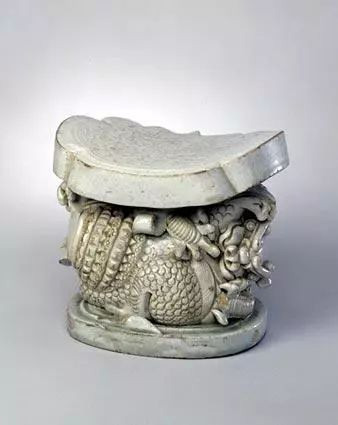 瓷枕是我国古代的夏令寝具,它清凉沁肤,爽身怡神,颇受人们的喜爱。唐宋时期一度广泛流行,宋代各窑曾大量烧造。这件宋代青白釉双狮枕,不仅造型生动,釉色莹润,有玉的质感,且兼具实用与欣赏双重价值,实为瓷中精品。
