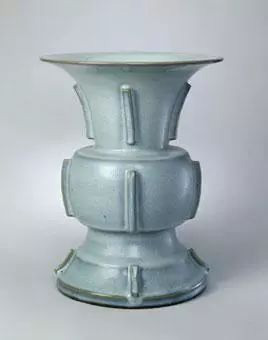 弦纹瓶是典型的哥窑产品,造型端庄秀美,金丝铁线纹片和肩颈凸起的四道弦纹使单一色釉增添了起伏变化,更具韵律感。哥窑传世品不多,主要藏于北京故宫博物院和台北故宫博物院。