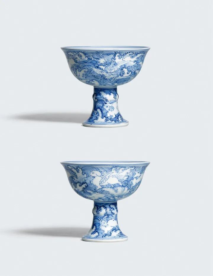 明万历仿宣德青花海兽纹高足杯,中国嘉德2020年秋季拍卖会