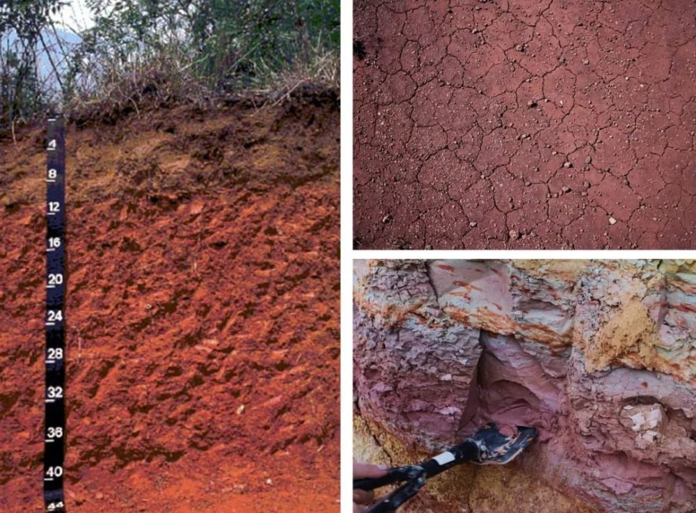 南方土壤颜色偏红,尤以江西、湖南和云南一些区域颜色最红。这里气候闷热潮湿而又多雨,导致大量易溶于水的土壤物质受雨水冲刷而流失,最终剩下氧化铁和氧化铝等显色矿物,因而呈现红色。土壤侵蚀导致埋藏的红层出露也是原因之一。