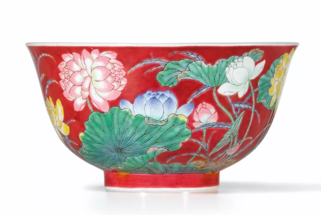 御制胭脂红地珐琅彩莲花图碗