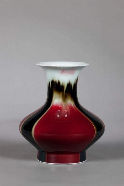 《三阳开泰》 高温窑变釉扁肚瓶  邓希平