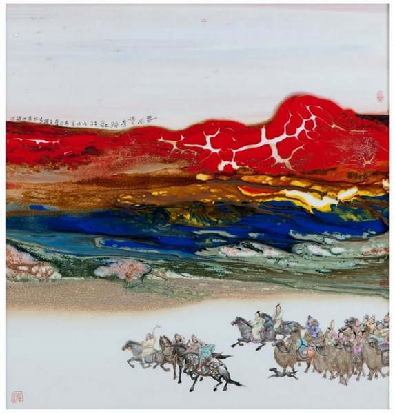 《春风得意踏歌行》 高温颜色釉墨彩瓷板  李文跃《仿清乾隆粉彩“吉庆有余”纹镂刻瓶》  阳士琦