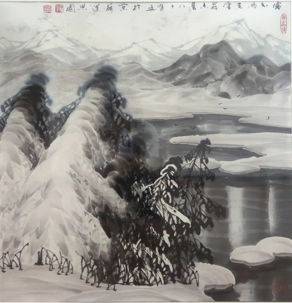 《匡庐瑞雪》粉彩瓷板 欧阳敏