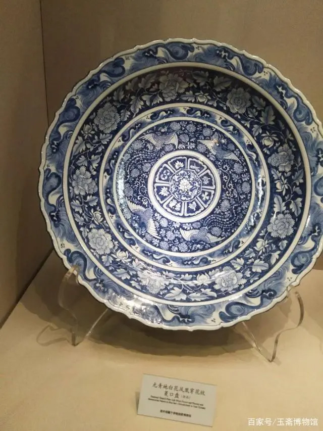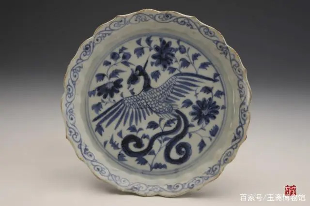 元青地白花凤凰穿花纹菱口盘 高安博物馆藏