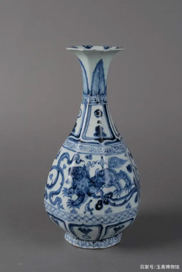 元 青花八棱狮球纹玉壶春瓶