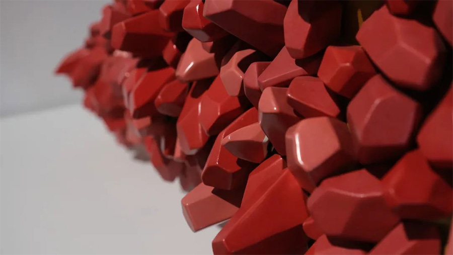 郅敏以陶瓷为主要媒介进行创作已近30年,不断尝试拓展陶瓷的边界,他以小片的陶瓷单体作为表意符号,通过无限拆解和重构,让陶瓷与雕塑相结合,突破体量限制,可随意赋形。
