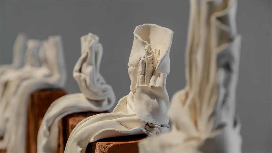 这是万里雅对陶瓷本体语言的探索,注重于表现客观物质材料的固有属性,并探寻这些物质属性对个体生命产生了何种的映照。由此产生的作品成为一种基于客观的主观表达,创造了材料表现在模拟和表现之间的暧昧空间。