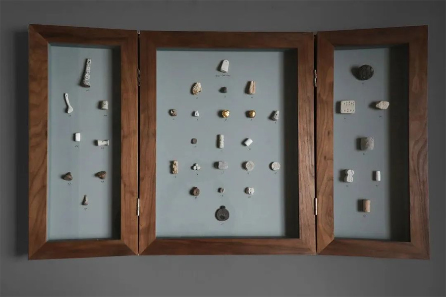作品来自“‘非非’影地质实验室计划”,这是一个由十组作品组成的伪造认知的游戏项目。其中《“新石器时代”工业印章》是一组伪装成岭南地区新石器时代沉积层地质考察出土的陶制印章。而观众在互动时会发现所有“出土”印章印出的图案都是日常工业产品的印记,由此探讨概念的形成与认知过程,创造出新的感知体验。
