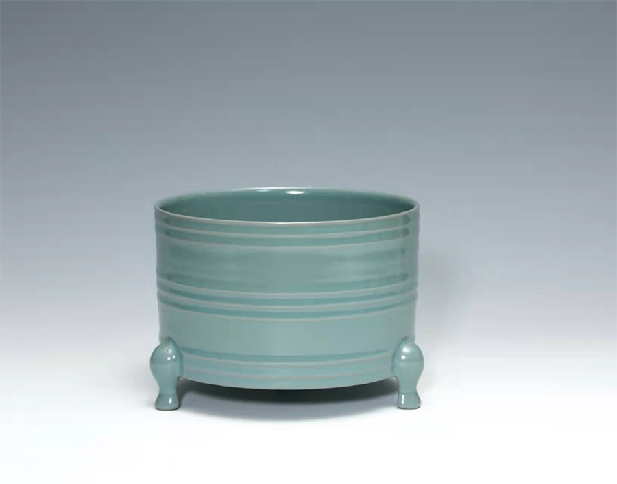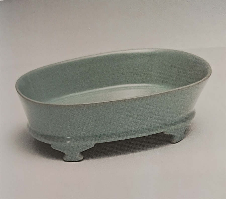 张亚格说着拿出一件“水仙盆”给记者介绍:“这个水仙盆真品有四件现藏于台北故宫博物馆,日本大阪市立东洋陶瓷美术馆1件。”