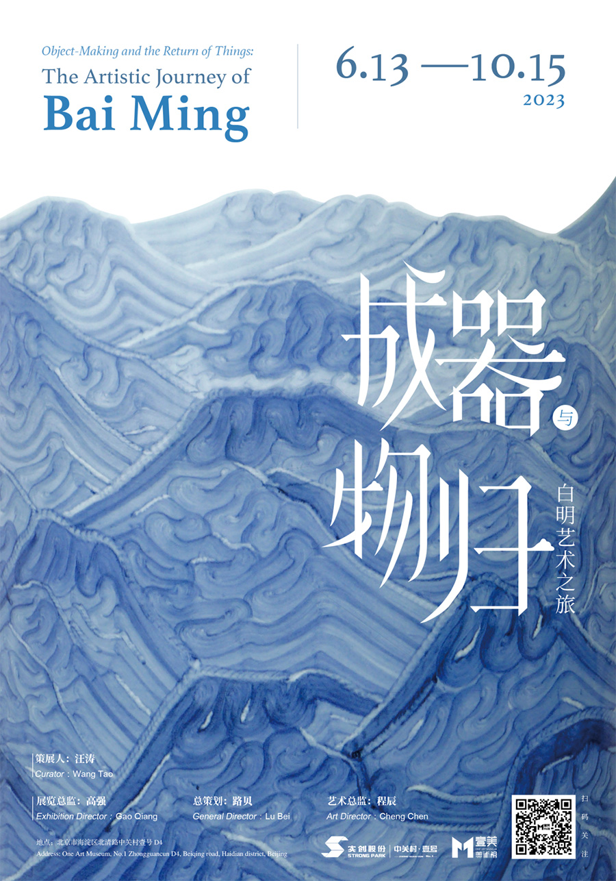 2023年6月13日至10月15日,“成器与物归——白明艺术之旅”在壹美美术馆展出,此次展览是对艺术家白明三十年艺术生涯最完整的一次阶段性回顾与总结,也是其近五年来涵盖作品时间范围最广且最重要的一次大型个展。展览分为4个展厅,共展出96件/组作品,通过“形生”“神游”“物归”三个板块向观众展示艺术家白明从“成器”到“物归”的心路历程。