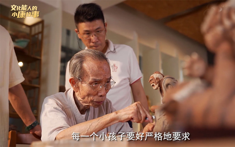 廖洪标是国家级石湾陶塑技艺传承人,从事陶塑研究创作70余年,他熟练掌握了陶瓷生产中泥、釉...