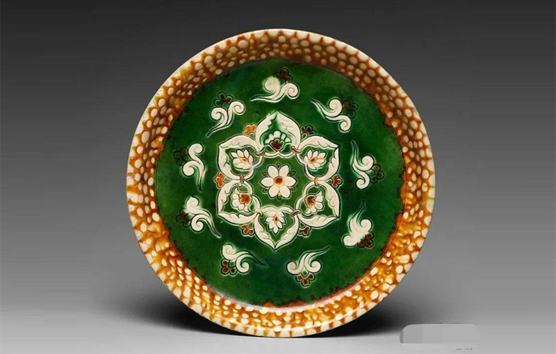 唐 三彩宝相花纹盘(正面) 美国大都会博物馆藏唐 三彩宝相花纹盘(底部) 美国大都会博物馆藏...