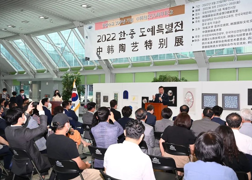 纪念中韩建交30周年"中韩陶艺特别展"8月24日在韩国国会开幕为纪念中韩建交30周年,由中国...