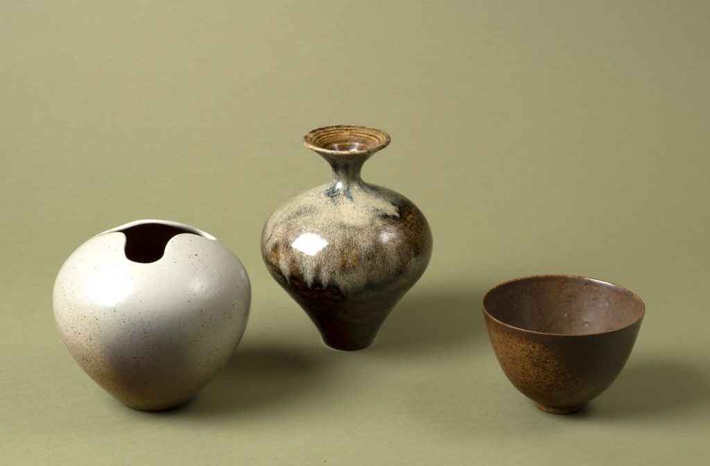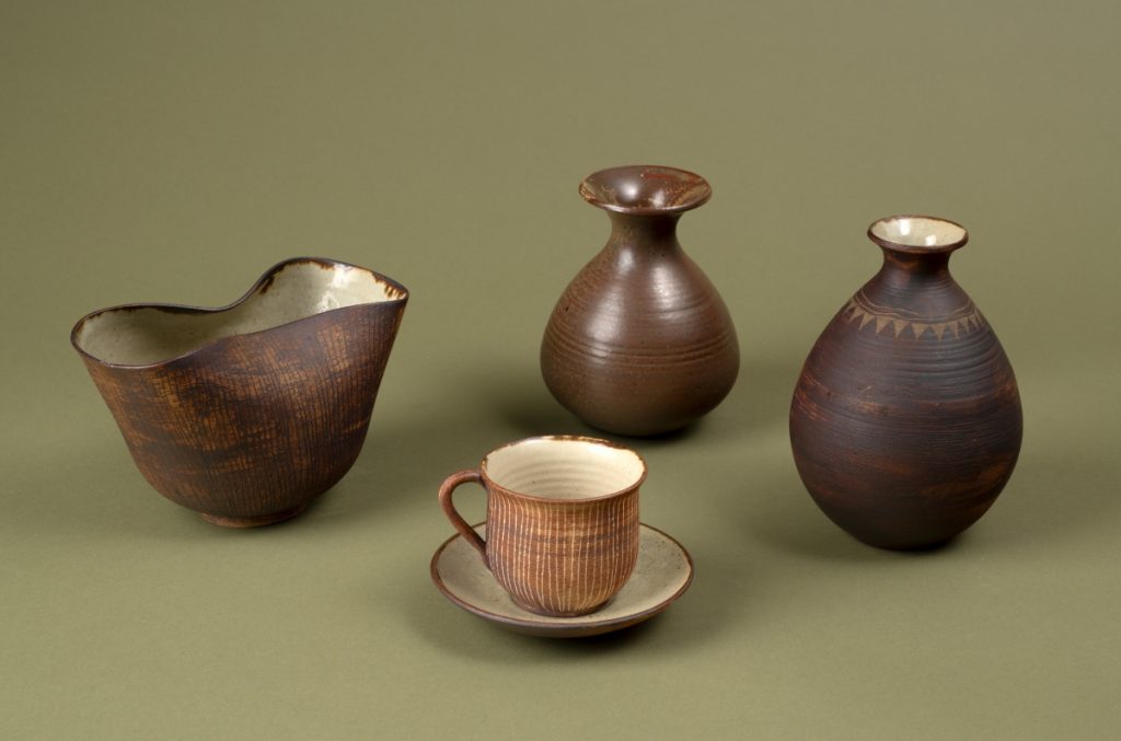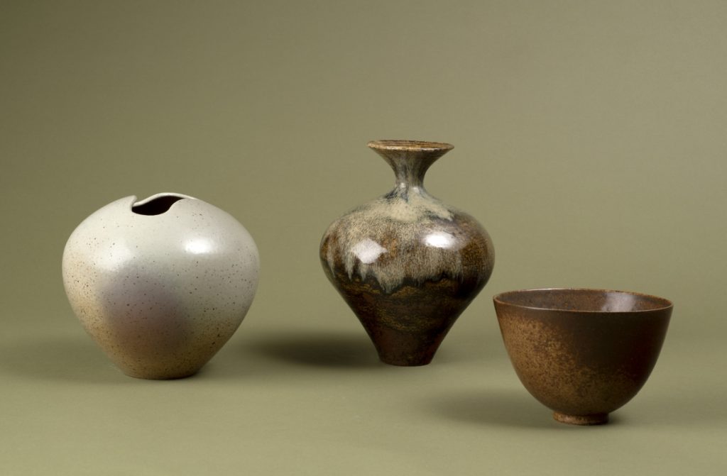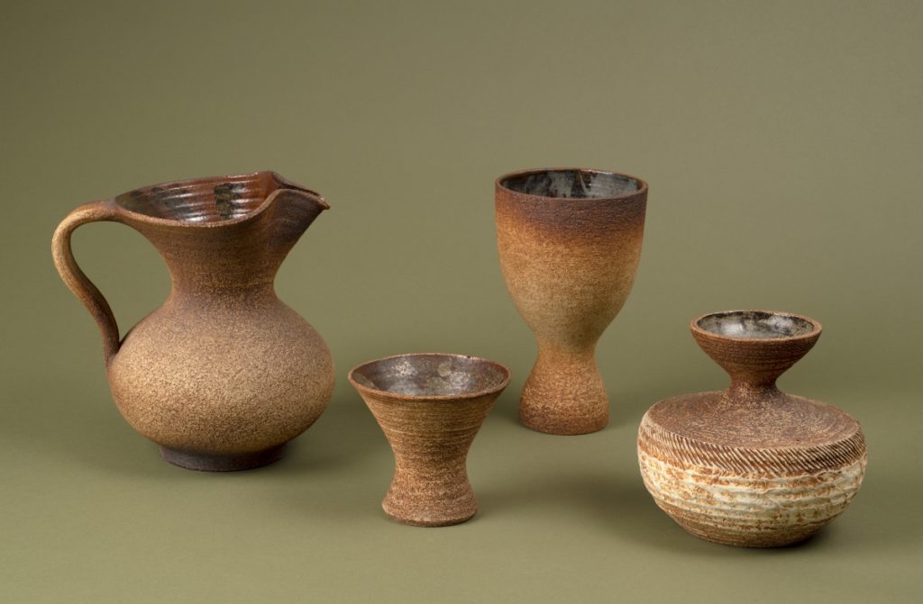 The 1960s were his most successful period. His pottery had a clear and distinctive voice; a rough surface texture, earthy organic tones, ribbed, patterned or incised with glazed interiors. His later pieces when he was living and working in Penzance, Cornwall, became even more abstract. His earthy woodland tones were exchanged for rough white and grey textures with azure blue interior glazes, and he produced monumental carved abstract sculptures of organic interlocking forms.