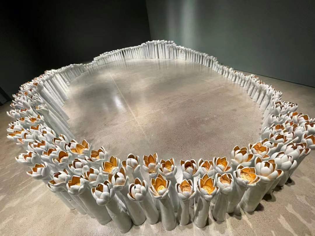 Another ceramic space work on display, Mirror of the Lotus, creates an artistic space through the artistic imagination generated by pottery. In this space, ceramics are no longer decorations on the walls, but people can talk to them in it, and many local performances even take place in the space of the work, with the ceramic work becoming the backdrop for improvised performances, and this interaction between people and objects forms the complete expression of this space art.