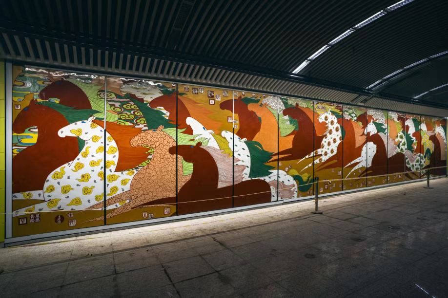 Zhu Lekeng|Red and green ceramic mural at Haidutun underground station, Beijing metro line 8 1840x320cm 2018